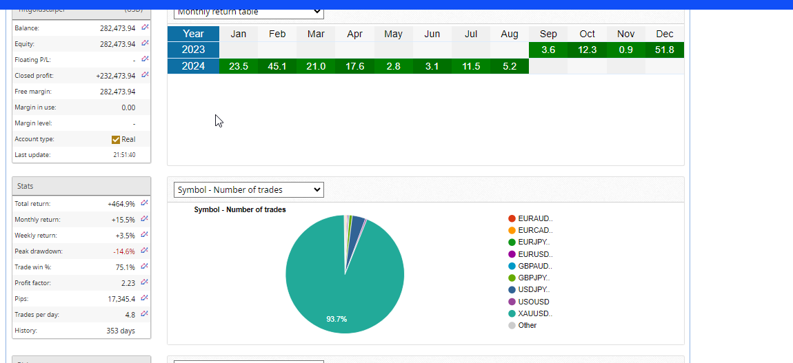 The EA_GOLDSCALPER from nehcap is the FINEST AND WORLD BEST GOLD trading system. No one else has such a long history of real tracking and making money continuously. August trades have CROSSED ABOVE +5%.