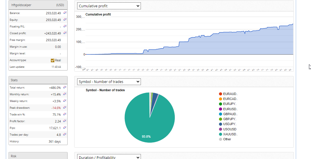Low DD and all months positive trading. Live trading