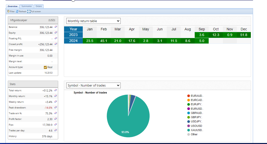 The EA_GOLDSCALPER from nehcap is the FINEST AND WORLD BEST GOLD trading system. September trading continues to rise sharply. Over +5% added to our 300k account. Get in now and start getting these trades.