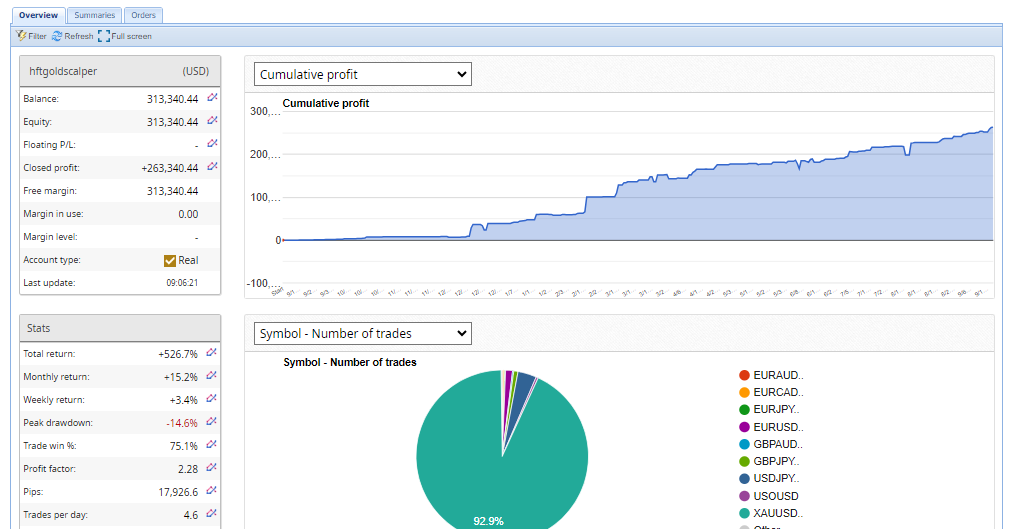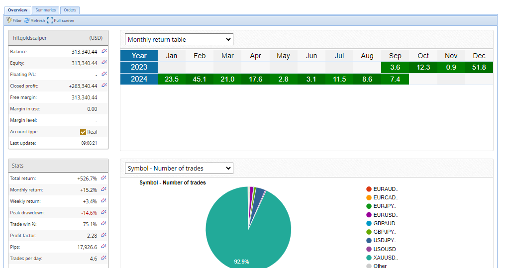 Introducing the EA_GoldScalper from Nehcap – the world’s leading and most profitable gold trading system. September returns have already surged to 7.2%, showcasing its consistent performance. This brilliant system is designed for high profitability, and now is the perfect time to join and start benefiting from these trades.