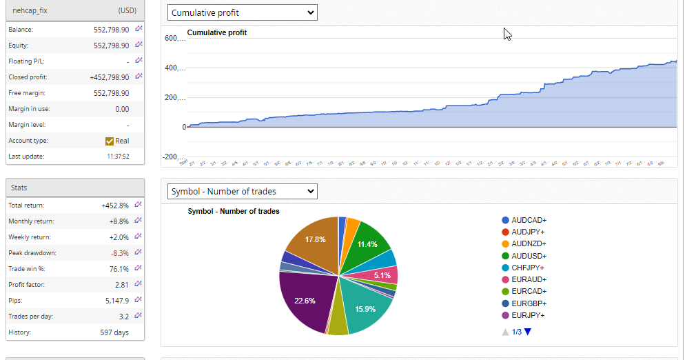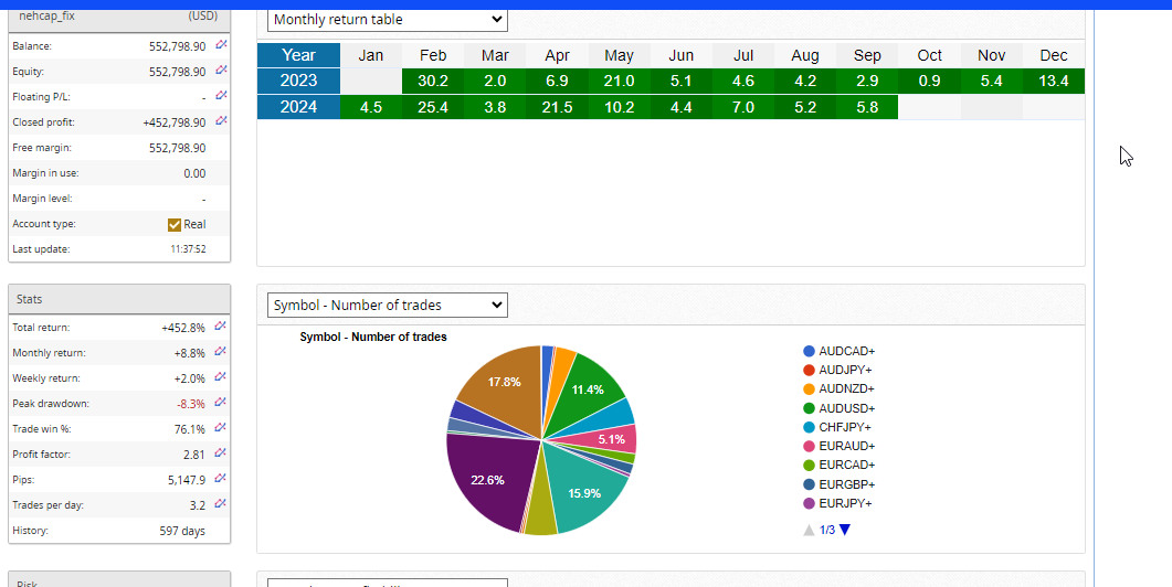 The HFT_FIX system operates on the FIX 4.4 channel, delivering an unparalleled level of high-speed scalping. This is only possible through direct FIX-API connectivity, allowing the system to trade directly into the market without the limitations of traditional platforms like MT4. In September, returns climbed to +5.8%, bringing the overall performance to an impressive +452% over more than 20 consecutive months of positive returns. Imagine not experiencing a losing month for over 20 months!