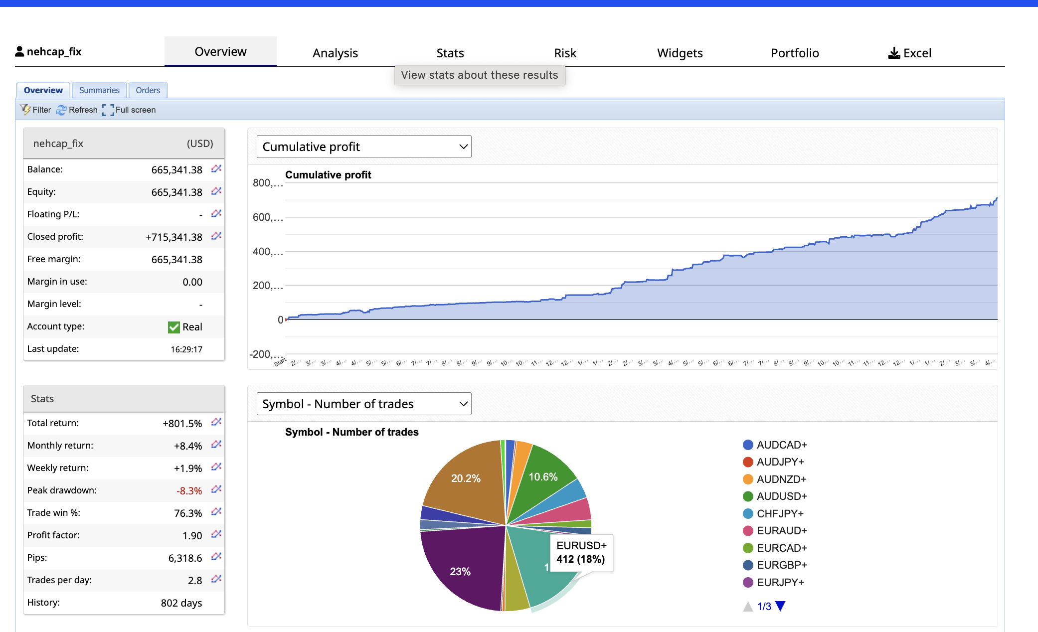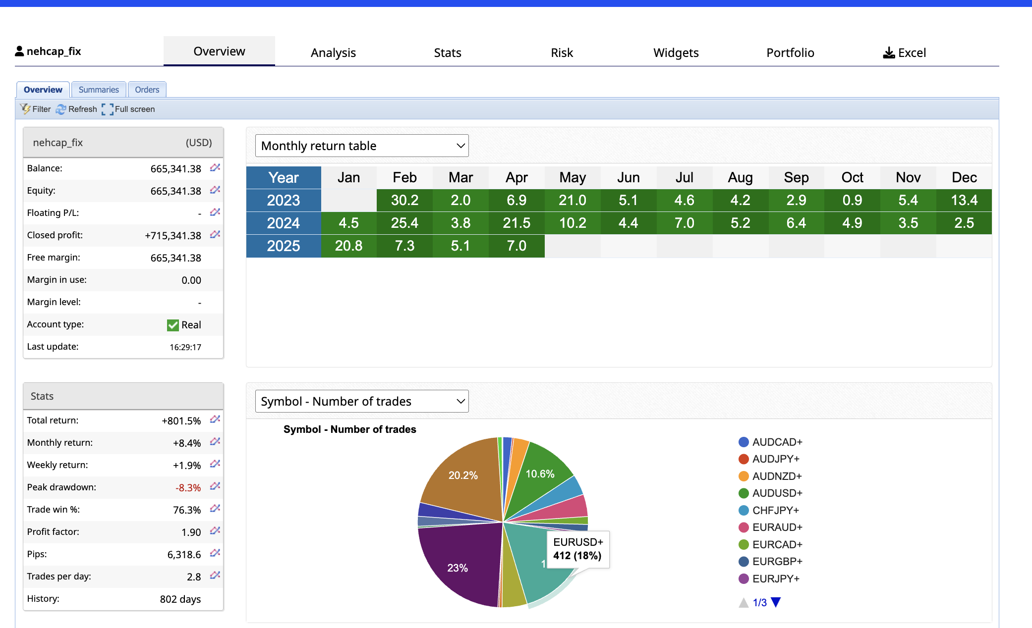 - Low Drawdowns: The system’s design, which leverages rapid execution using Fill-or-Kill (FOK) orders on FIX 4.4, has maintained exceptionally low drawdowns.