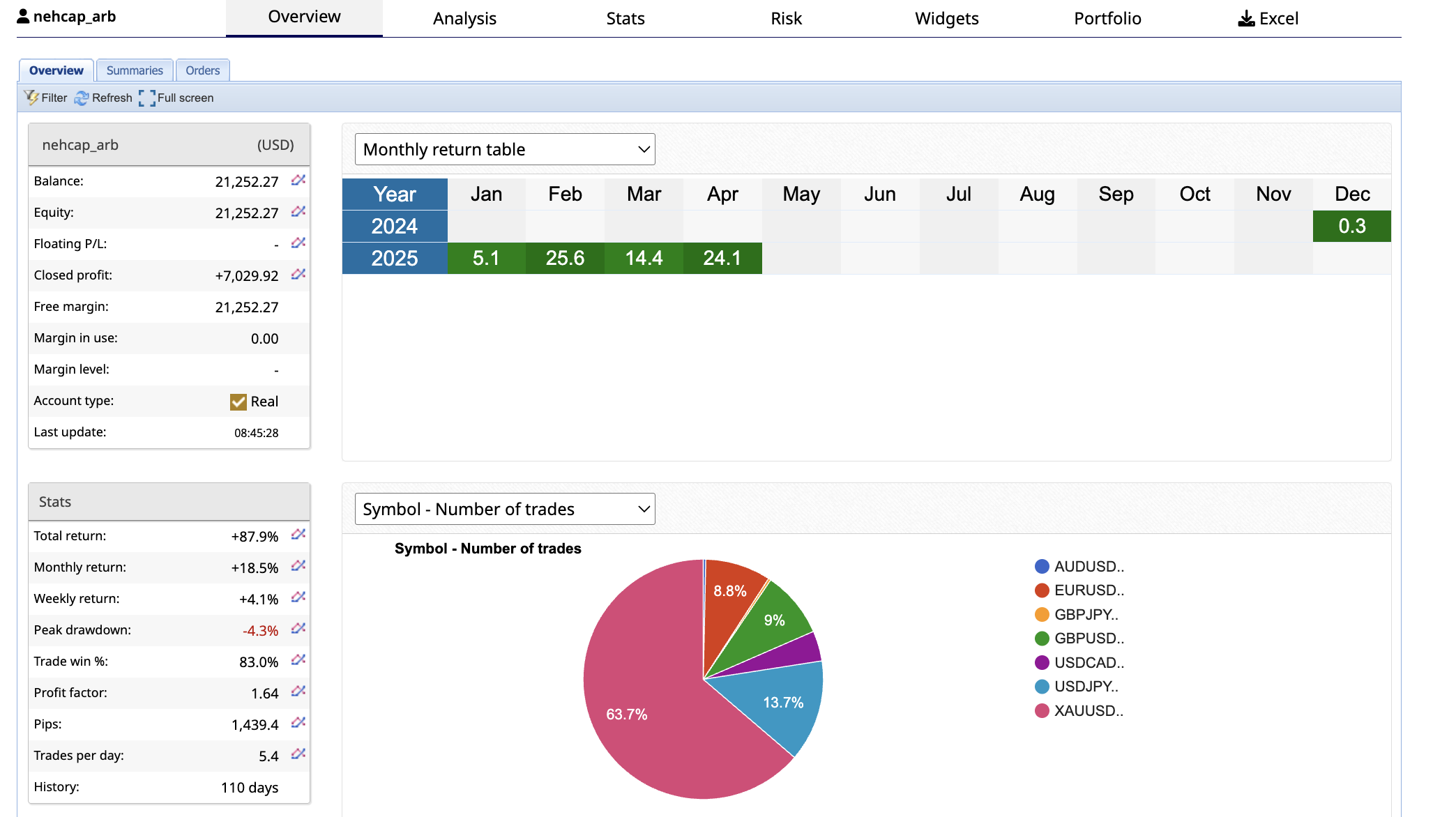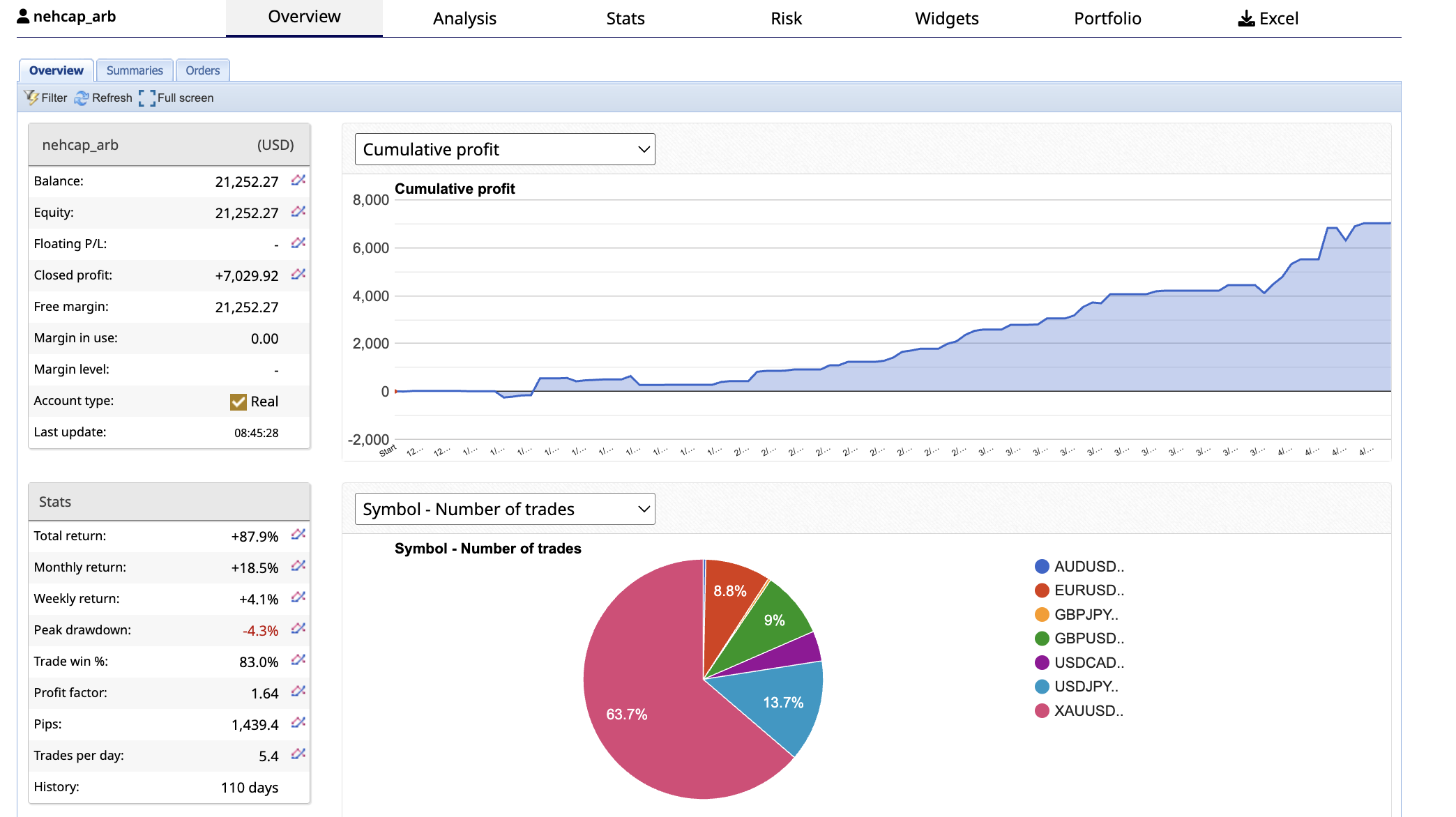 The arbitrage system had losses to 2.5% as risk management filter module is fully active. This system does not take chances and will clear out trades if they dont work. No martingale and no grids. Pure arb trading.