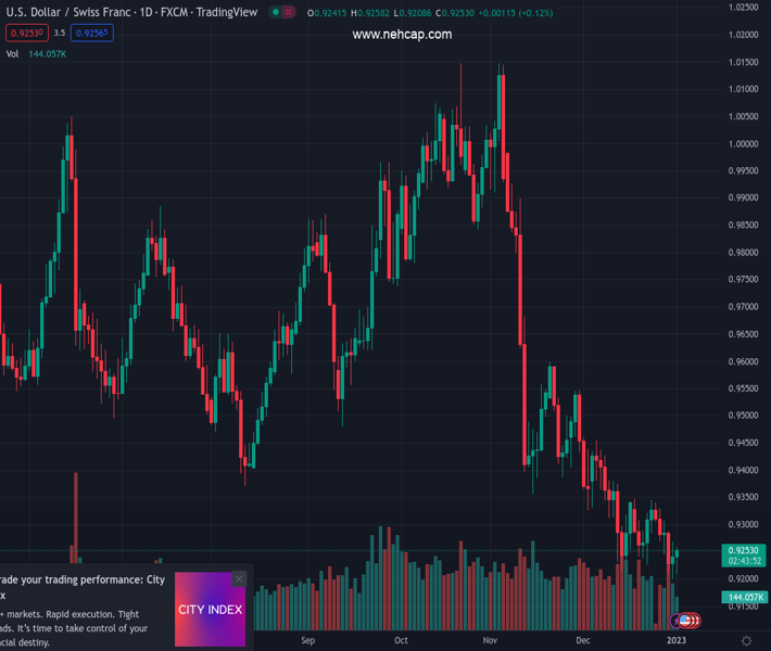 The Swiss Franc (CHF) bounces at around 0.9200 and climbs toward 0.9250s amidst the North American session, which witnessed light liquidity conditions in the observance of 2023 new year’s eve. Therefore, the lack of US and Swiss economic data left traders adrift to market mood and technical. At the time of writing, the USD/CHF is trading at 0.9255, above its opening price by 0.15%.