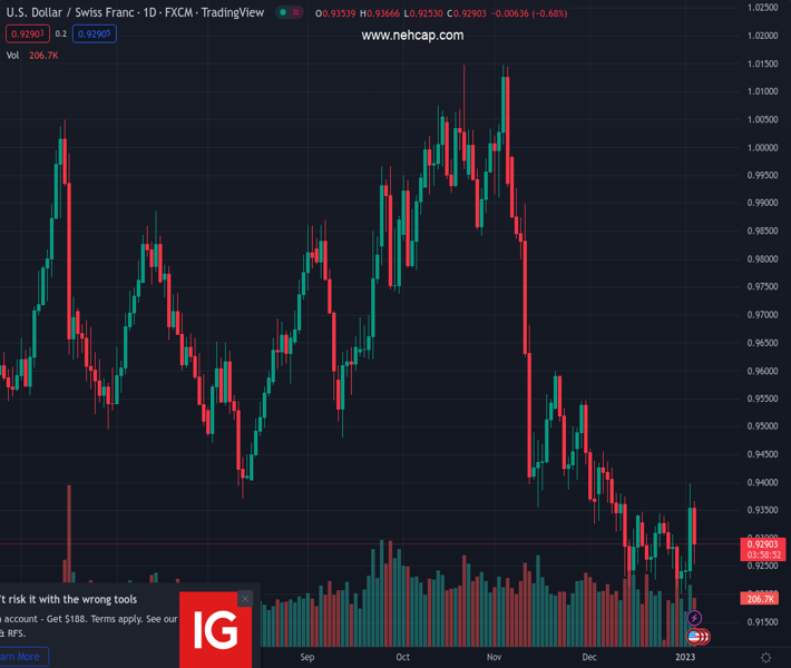 USDCHF currently trading at 0.9271 at the time of writing. Pair opened at 0.936 and is trading with a change of -0.95 % .