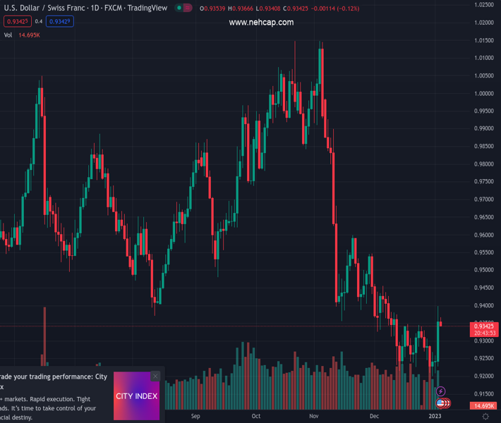 USDCHF currently trading at 0.9347 at the time of writing. Pair opened at 0.936 and is trading with a change of -0.14 % .