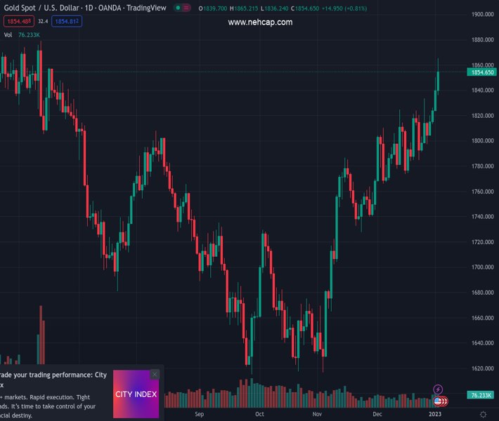 XAUUSD currently trading at 1854.56 at the time of writing. Pair opened at 1838.16 and is trading with a change of 0.89 % .