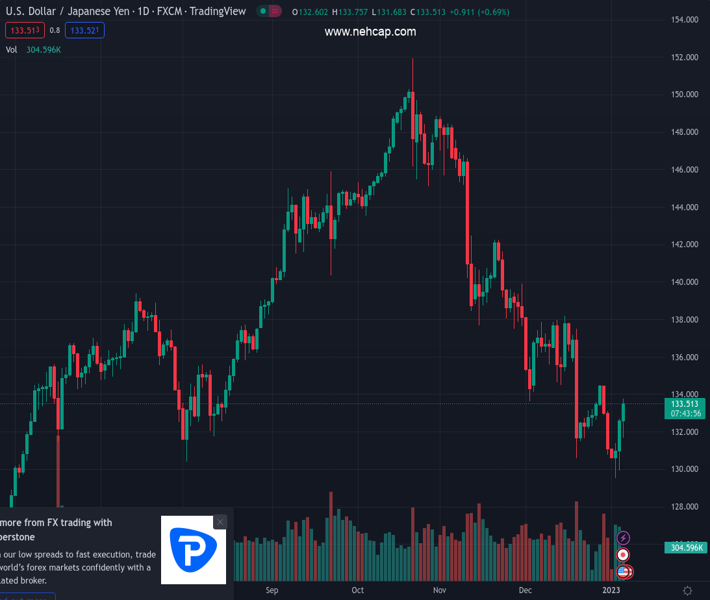 USDJPY currently trading at 133.69 at the time of writing. Pair opened at 132.68 and is trading with a change of 0.76 % .