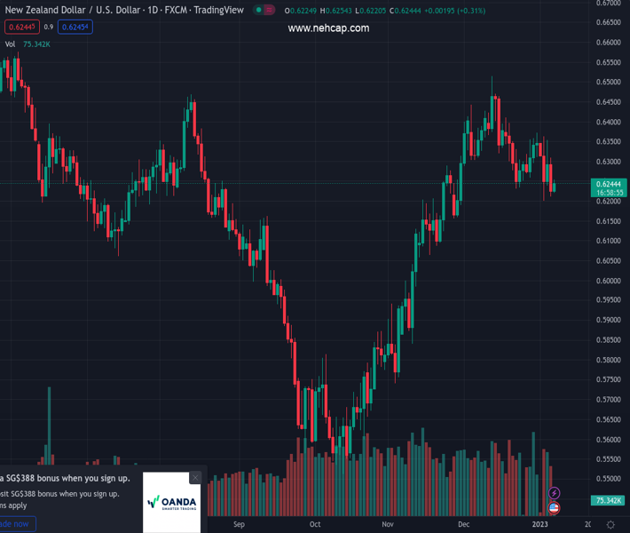 NZDUSD currently trading at 0.625 at the time of writing. Pair opened at 0.6229 and is trading with a change of 0.34 % .