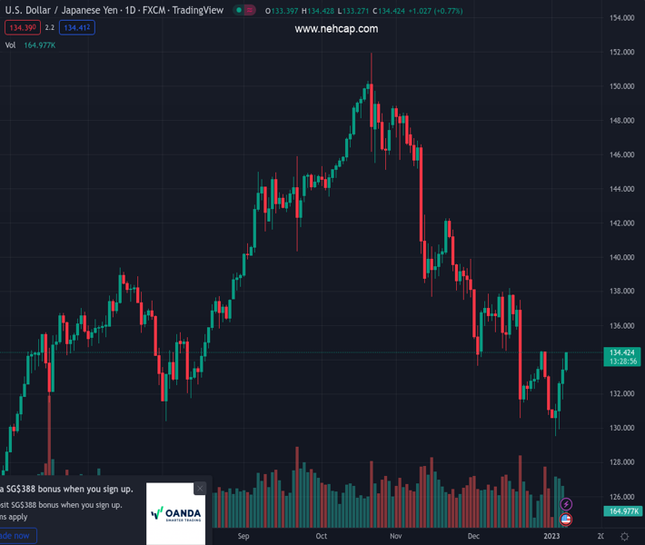 USDJPY currently trading at 134.28 at the time of writing. Pair opened at 133.36 and is trading with a change of 0.69 % .