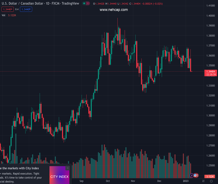USDCAD currently trading at 1.3445 at the time of writing. Pair opened at 1.3444 and is trading with a change of 0.01 % .