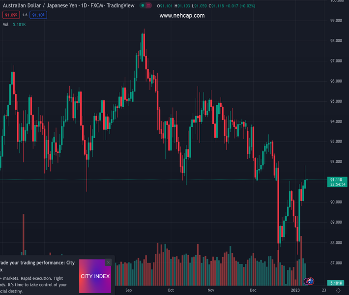 AUDJPY currently trading at 91.17 at the time of writing. Pair opened at 90.94 and is trading with a change of 0.25 % .