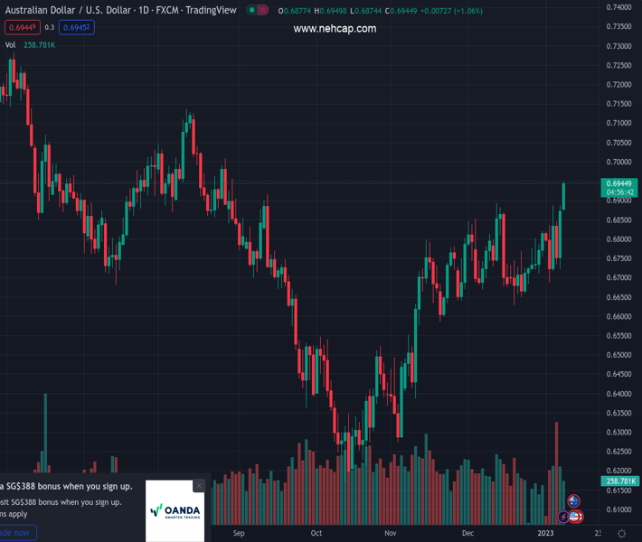 The AUD/USD soars sharply above the 0.6900 figure on speculations that the US Federal Reserve (Fed) would pivot from tightening monetary conditions, so the US Dollar weakened. US Treasury yields are dropping toward the 3.50% region while global equities continue to rise. At the time of writing, the AUD/USD is trading at 0.6948, above its opening price by 1.11%.