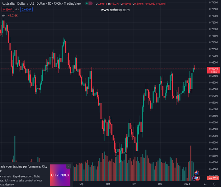 AUDUSD currently trading at 0.6894 at the time of writing. Pair opened at 0.6912 and is trading with a change of -0.26% % .