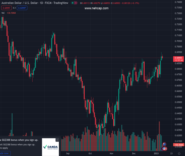 AUDUSD currently trading at 0.6905 at the time of writing. Pair opened at 0.6912 and is trading with a change of -0.1 % .