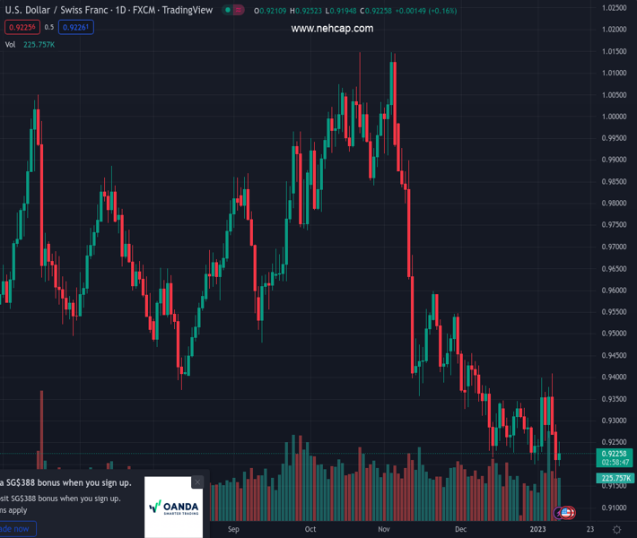 USDCHF currently trading at 0.9231 at the time of writing. Pair opened at 0.9212 and is trading with a change of 0.21 % .