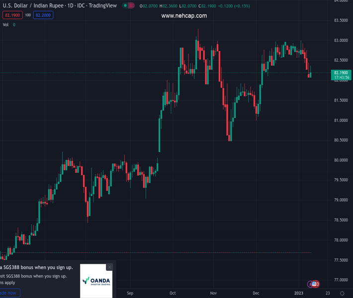 USDINR currently trading at 82.1599 at the time of writing. Pair opened at 82.182 and is trading with a change of -0.03% % .