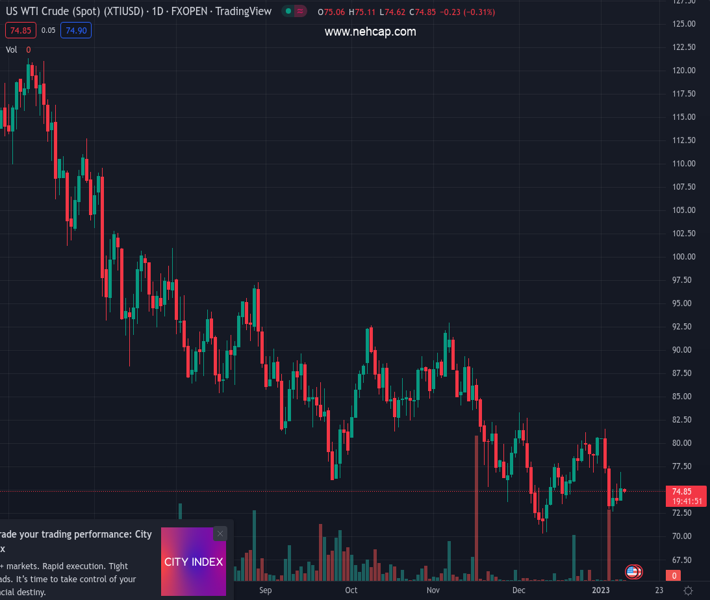 XTIUSD currently trading at 74.78 at the time of writing. Pair opened at 75.02 and is trading with a change of -0.32 % .