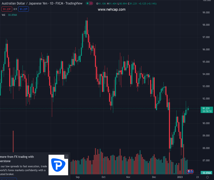 AUDJPY currently trading at 91.16 at the time of writing. Pair opened at 91.16 and is trading with a change of 0.0 % .