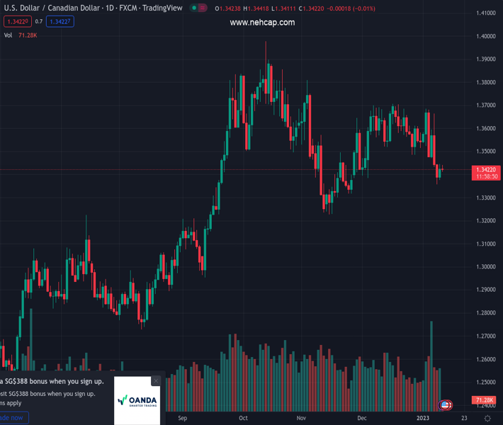 USDCAD currently trading at 1.3419 at the time of writing. Pair opened at 1.3426 and is trading with a change of -0.05 % .
