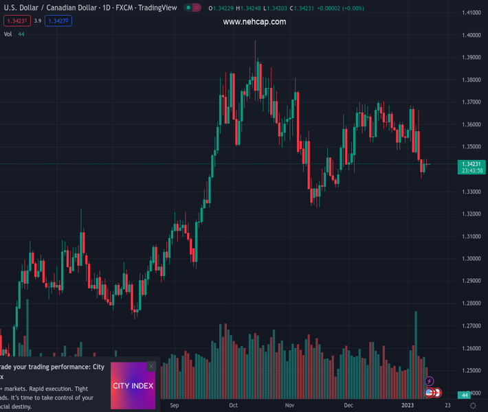 USDCAD currently trading at 1.3425 at the time of writing. Pair opened at 1.3426 and is trading with a change of -0.01 % .