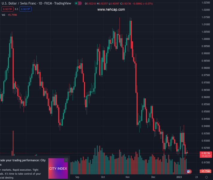 USDCHF currently trading at 0.9214 at the time of writing. Pair opened at 0.9228 and is trading with a change of -0.15% % .