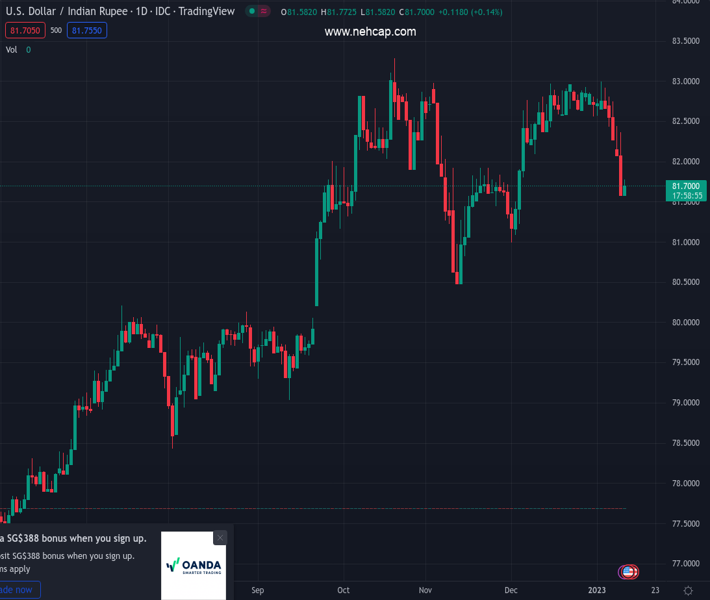 USDINR currently trading at 81.674 at the time of writing. Pair opened at 81.6285 and is trading with a change of 0.06 % .