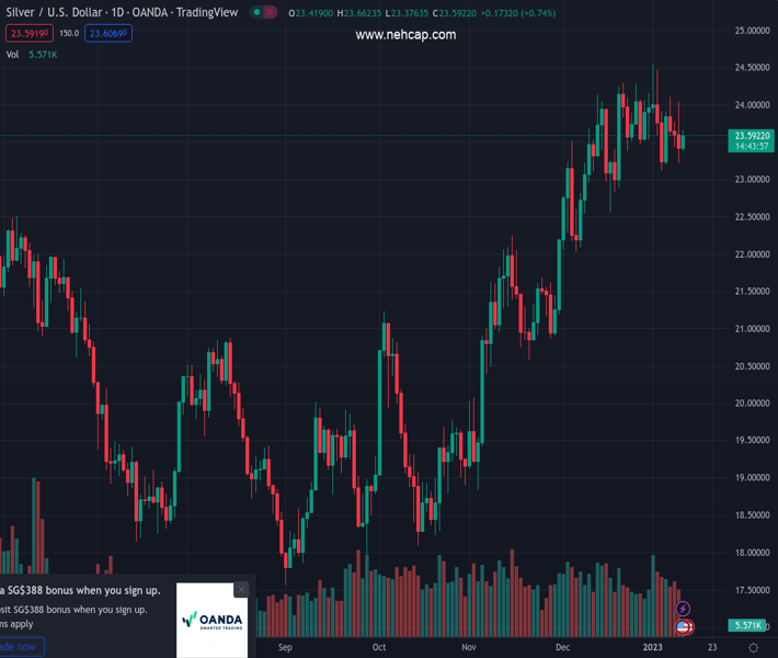 XAGUSD currently trading at 23.63 at the time of writing. Pair opened at 23.42 and is trading with a change of 0.9 % .