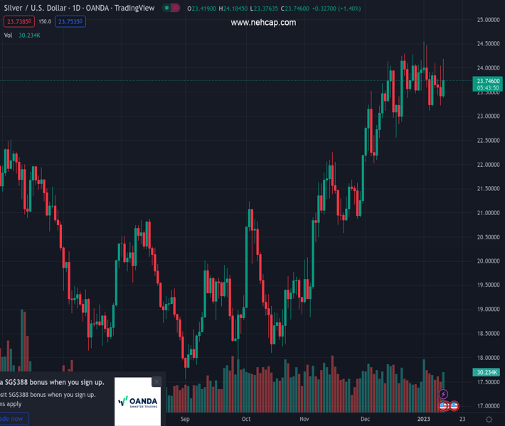 XAGUSD currently trading at 23.74 at the time of writing. Pair opened at 23.42 and is trading with a change of 1.37 % .