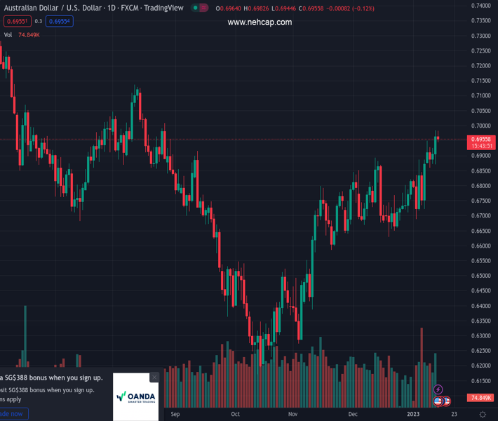 AUDUSD currently trading at 0.6953 at the time of writing. Pair opened at 0.6968 and is trading with a change of -0.22 % .
