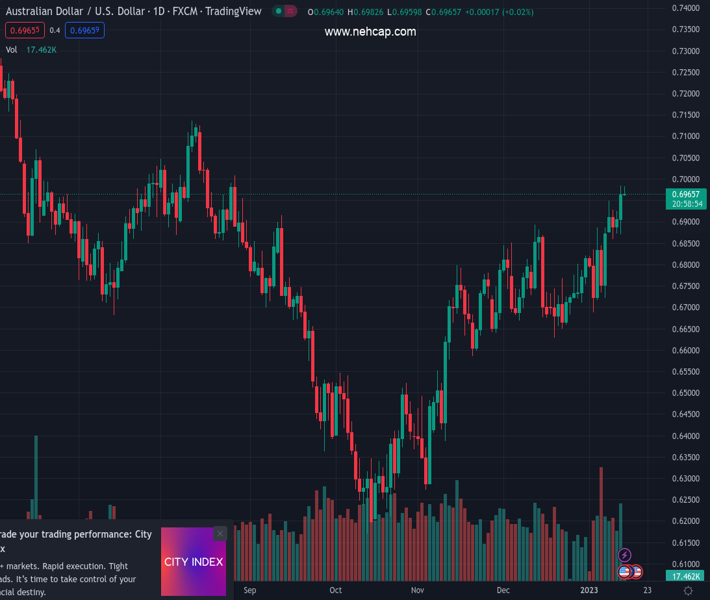 AUDUSD currently trading at 0.6969 at the time of writing. Pair opened at 0.6968 and is trading with a change of 0.01 % .