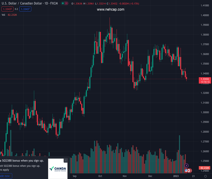 USDCAD currently trading at 1.3338 at the time of writing. Pair opened at 1.3362 and is trading with a change of -0.18 % .
