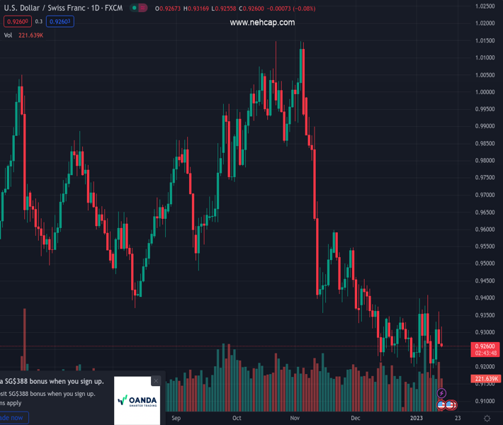 USDCHF currently trading at 0.9264 at the time of writing. Pair opened at 0.928 and is trading with a change of -0.17 % .