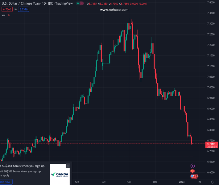 In recent trade today, the People’s Bank of China (PBOC) set the yuan (CNY) at 6.7292 vs the last close of 6.7260.