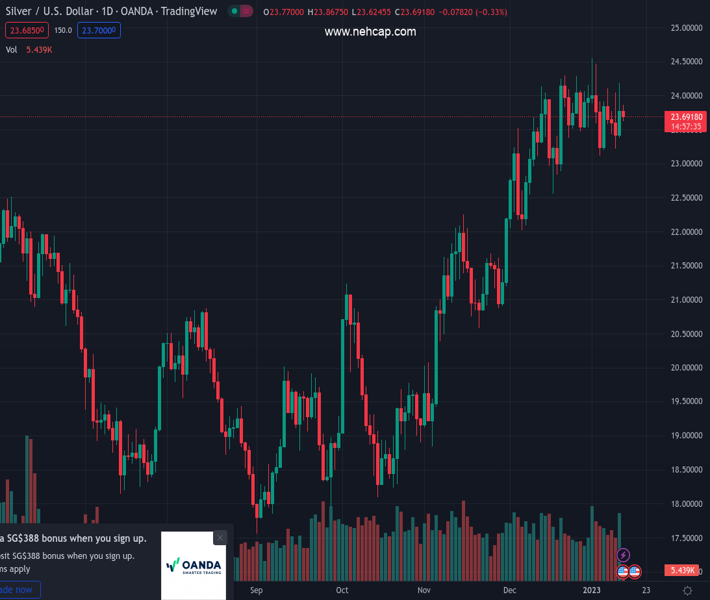 XAGUSD currently trading at 23.75 at the time of writing. Pair opened at 23.78 and is trading with a change of -0.13 % .