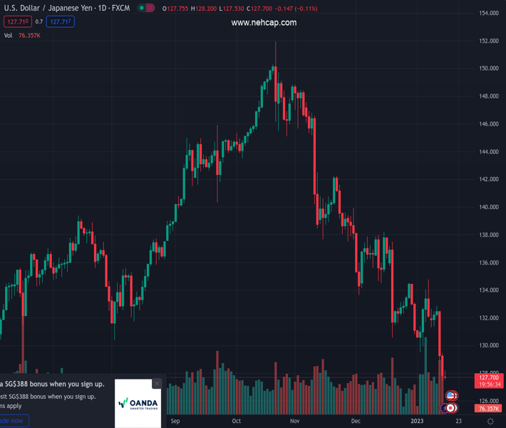 Amid a broadly weaker US Dollar, USD/JPY is trading 0.10% lower at 127.70, at the press time.