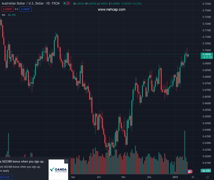 AUDUSD currently trading at 0.6973 at the time of writing. Pair opened at 0.695 and is trading with a change of 0.33 % .