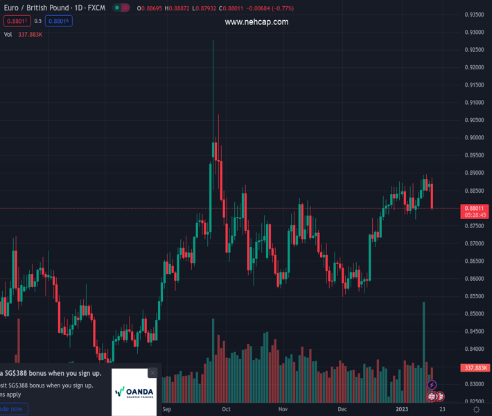 EURGBP currently trading at 0.8827 at the time of writing. Pair opened at 0.8873 and is trading with a change of -0.52 % .
