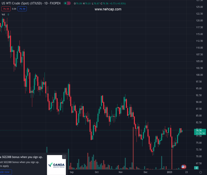 Amidst mixed comments from the OPEC Chief, the WTI price is reversing below the $80 mark, currently trading at $79.76. The US oil is still up 0.80% on the day.