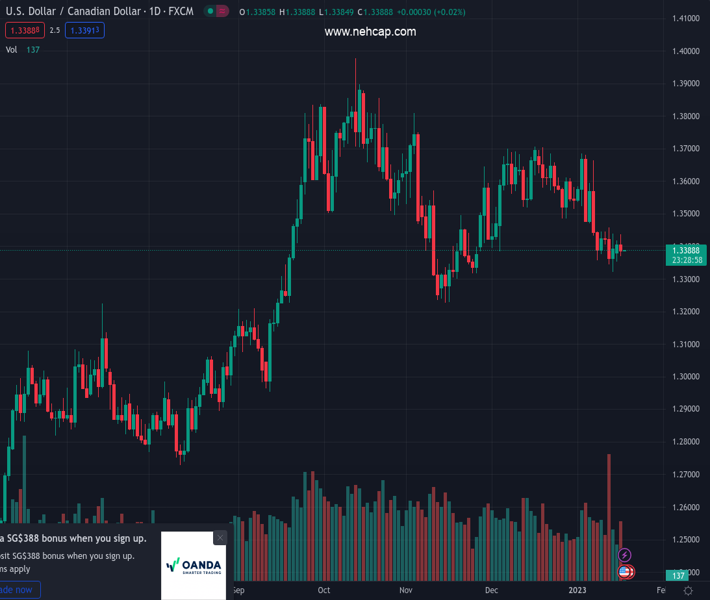 USDCAD currently trading at 1.339 at the time of writing. Pair opened at 1.3415 and is trading with a change of -0.19 % .