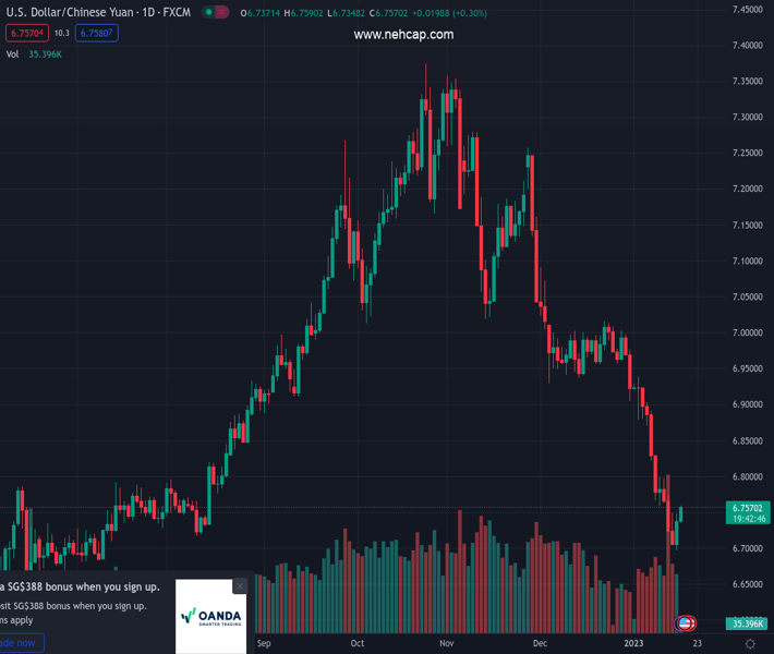 USDCNH currently trading at 6.7566 at the time of writing. Pair opened at 6.746 and is trading with a change of 0.16 % .