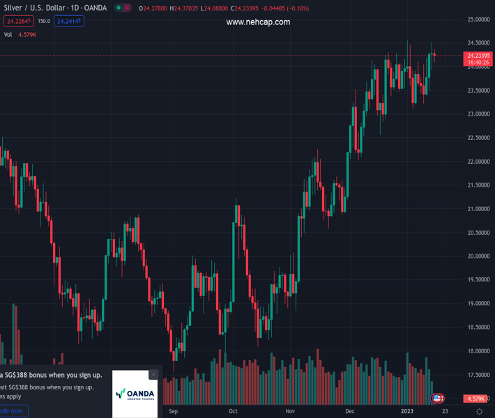 XAGUSD currently trading at 24.19 at the time of writing. Pair opened at 24.26 and is trading with a change of -0.29 % .