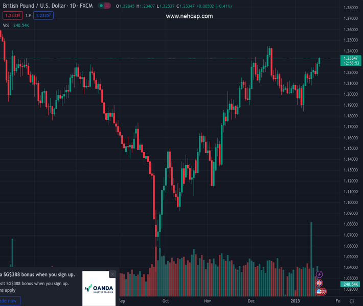 #GBPUSD @ 1.23349 gains traction for the second straight day and climbs to over one-month high.
