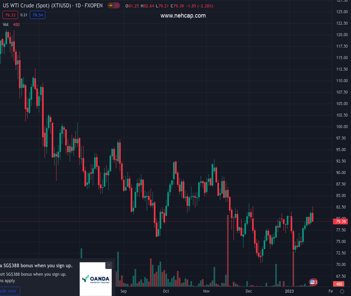 XTIUSD currently trading at 79.51 at the time of writing. Pair opened at 81.29 and is trading with a change of -2.19 % .