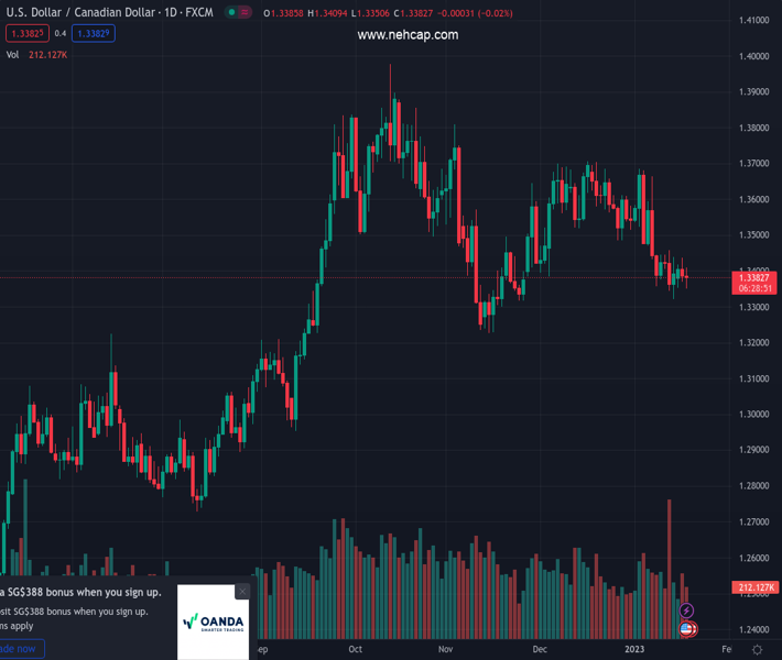 USDCAD currently trading at 1.3377 at the time of writing. Pair opened at 1.3388 and is trading with a change of -0.08 % .
