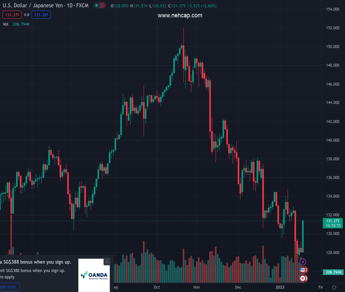 USDJPY currently trading at 131.39 at the time of writing. Pair opened at 128.21 and is trading with a change of 2.48 % .
