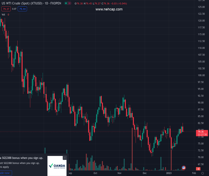 XTIUSD currently trading at 79.39 at the time of writing. Pair opened at 81.29 and is trading with a change of -2.34% % .