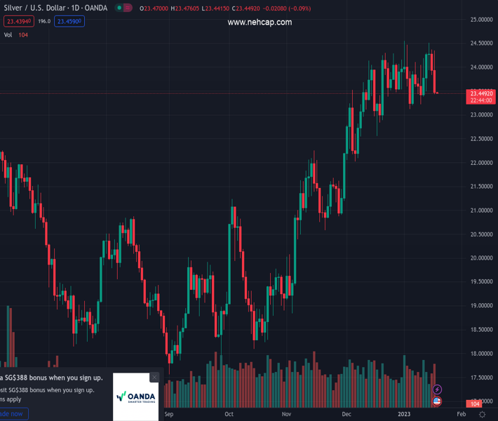 XAGUSD currently trading at 23.47 at the time of writing. Pair opened at 23.93 and is trading with a change of -1.92 % .