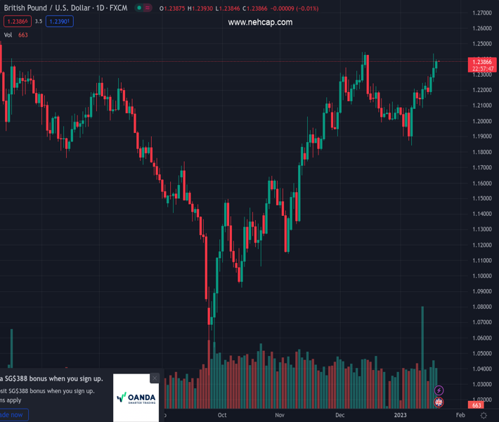 GBPUSD currently trading at 1.2388 at the time of writing. Pair opened at 1.2338 and is trading with a change of 0.41% % .