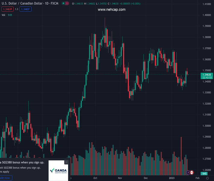 USDCAD currently trading at 1.3466 at the time of writing. Pair opened at 1.35 and is trading with a change of -0.25 % .